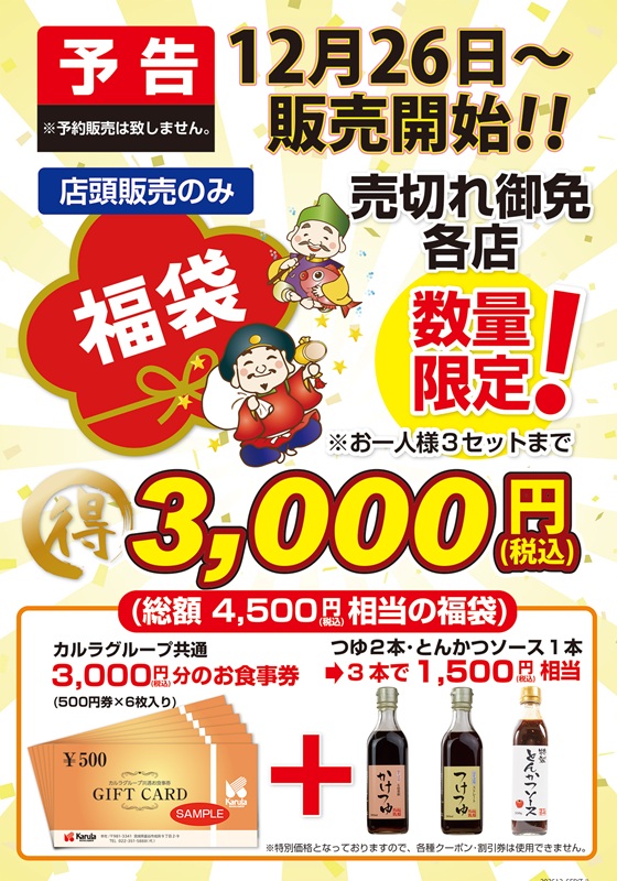 かつグルメ(中野店を除く)12月29日~1月4日